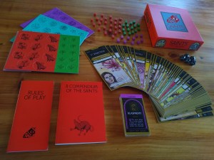 Condensing the full complexity and strategy of a collectible card game into a single box, enter the strange world of the Catholic saints, where miracles cost suffering and praying for Acts of God is a viable strategy.