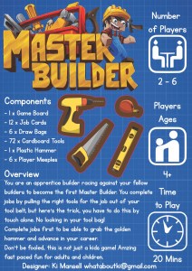 Race against friends to become the Master Builder. Complete jobs by blindly reaching into your tool bag and pulling out the correct tools you need. Quickest builder grabs the Golden Hammer and gets a promotion. Complete your job and you’ll still advance. Just don’t be the last to complete their job or pull out the wrong tool.