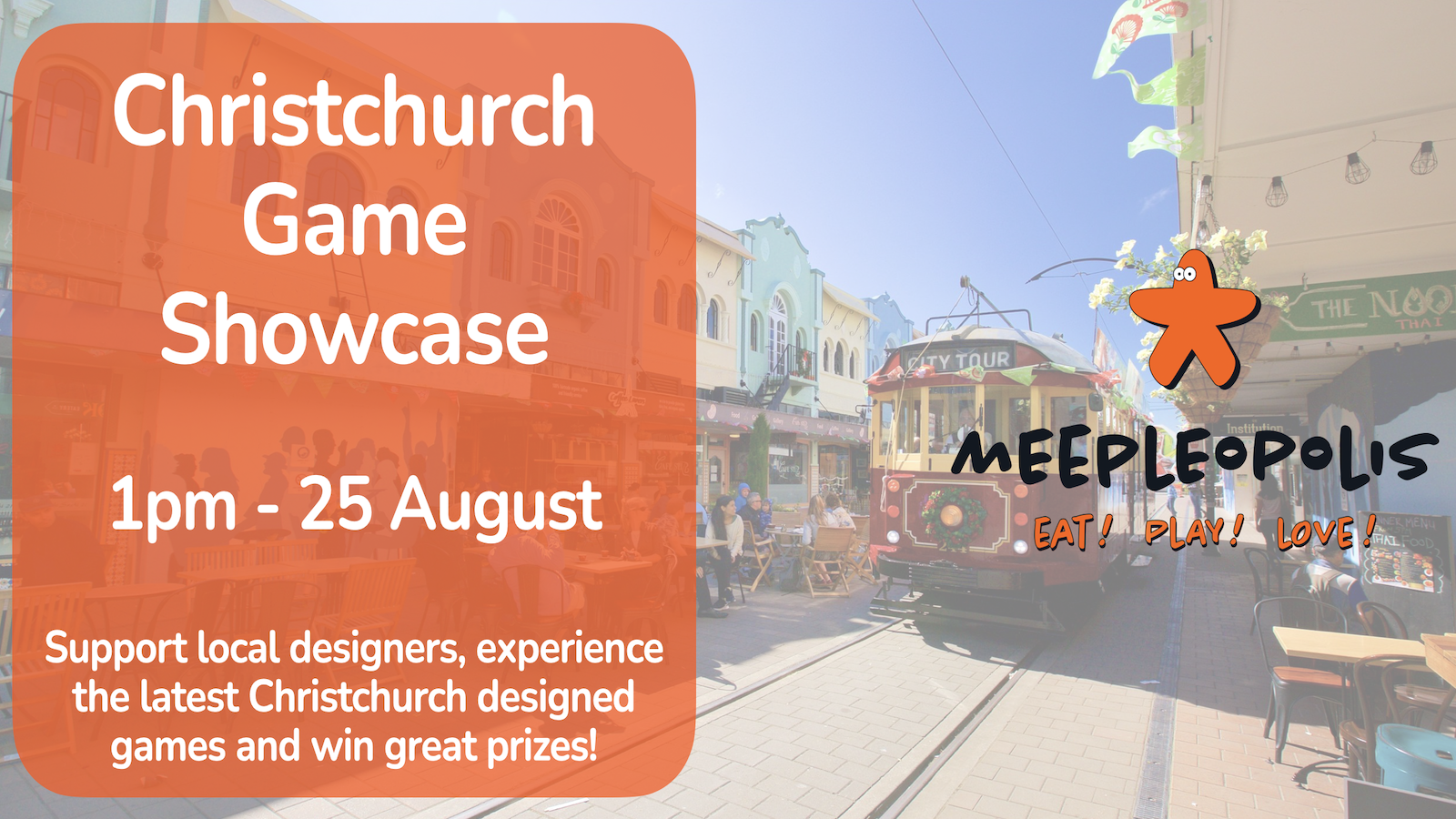 Join us at Meepleopolis from 1pm on Sunday, 25th August for a special event celebrating the vibrant and talented tabletop game designer community of Christchurch. Discover the latest and greatest locally designed games, meet the creative minds behind them, and stand a chance to win fantastic prizes!