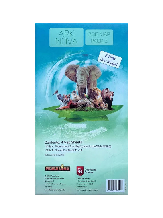 Ark Nova: Zoo Map Pack 2 features five new zoo designs.