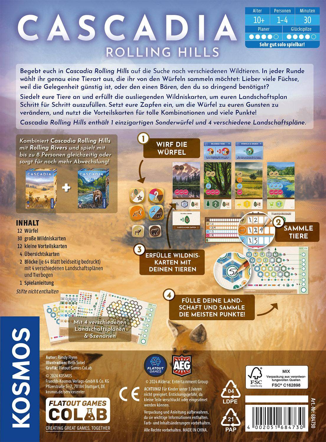 There are two versions of Cascadia: Rolling. Cascadia: Rolling Hills features unique content specific to the prairie environments of Cascadia! Each version features unique content - get both versions to play 1-8 players on 8 different maps!: