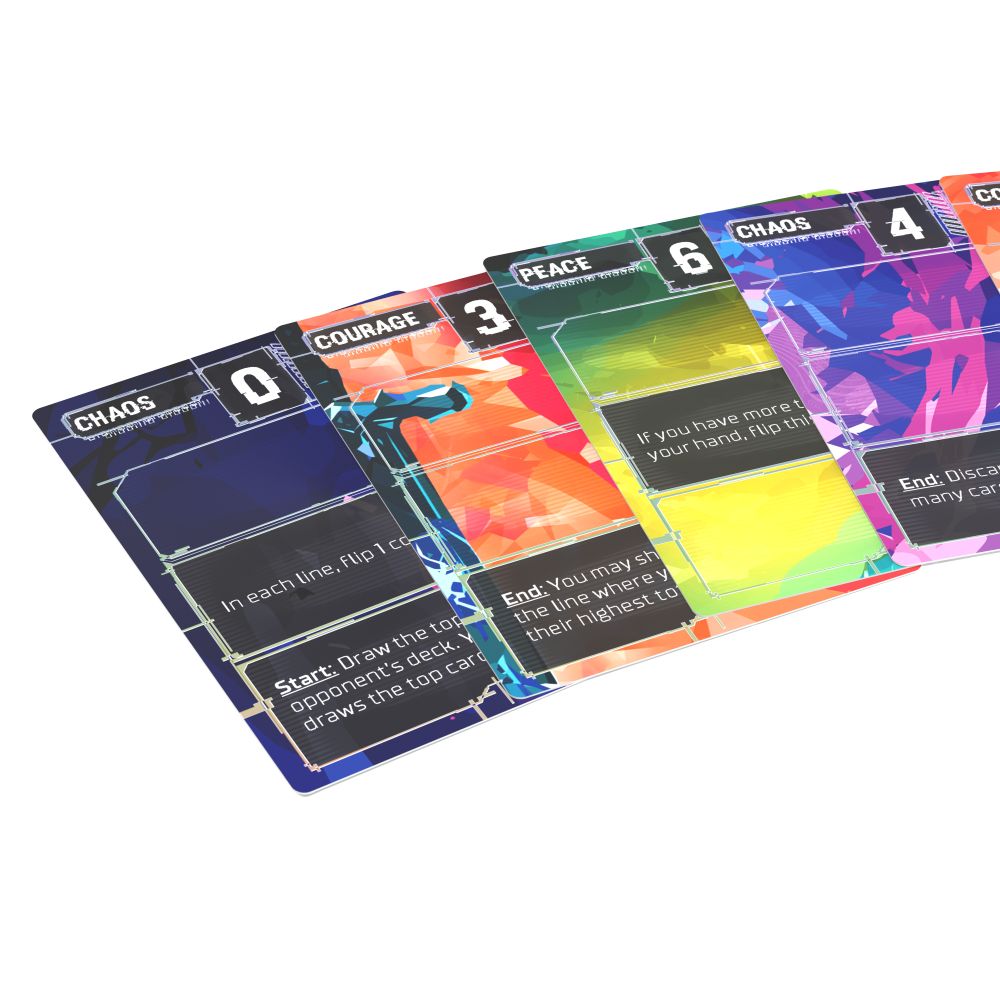 In the card game Compile, you are competing artificial intelligences trying to understand the world around you. Two players select three Protocols each to test. Concepts ranging from Chaos to Mirror are pitted against each other to reach ultimate understanding. Play cards into your Protocols' command lines to breach the threshold and defeat your opponent to Compile. First to Compile all three Protocols grasps those concepts to win the game.