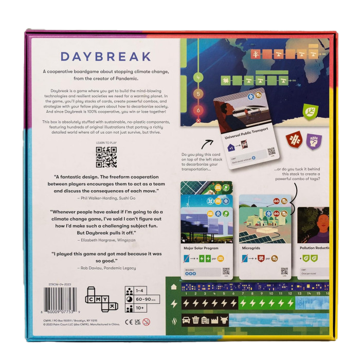 Daybreak is a co-operative game about climate action. Each player controls a world power, deploying policies and technologies to both dismantle the engine of global heating and to build resilient societies that protect people from life-threatening crises.