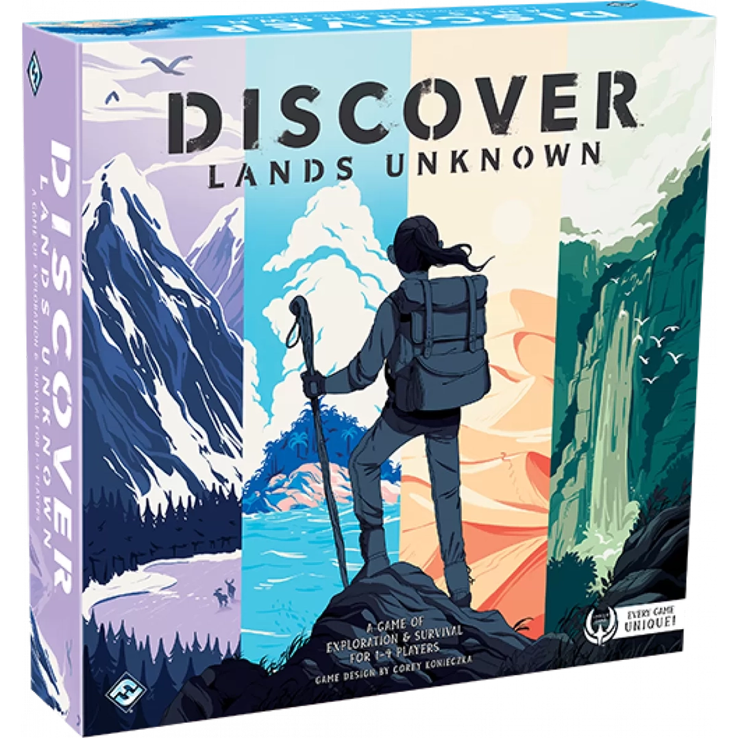 When two to four players find themselves marooned in the harsh wilderness, you must cooperate and compete to search for water, food, and tools that will be essential to your very survival. But your adventure holds many secrets. Every copy of Discover: Lands Unknown is unlike any other in the world. A mix of environments, storylines, characters, locations, items, and enemies have been engineered to tell a story unique to every copy of the game thanks to an algorithm that ensures no two copies are alike. Your copy will contain various tiles, cards, and tokens, each pulled from a shared pool of components, and the combination will be different from every other copy in the world.