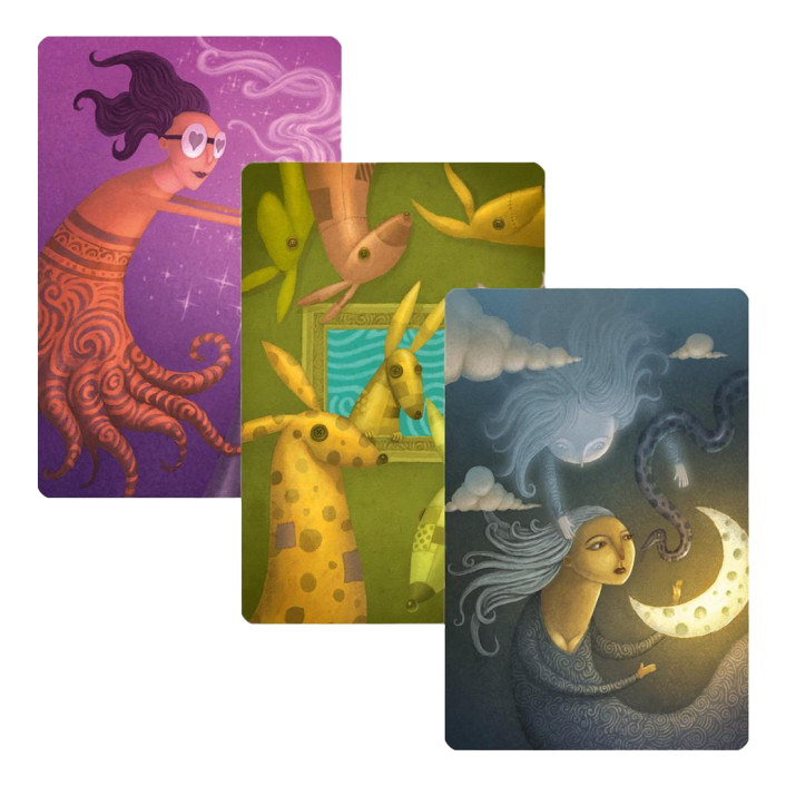 Dixit: Daydreams brings surreal new artwork to the multi-award winning game of Dixit! The expansion's 84 cards, illustrated by Franck Dion, bring to life a dreamlike world that's full of bizarre and fantastical characters.