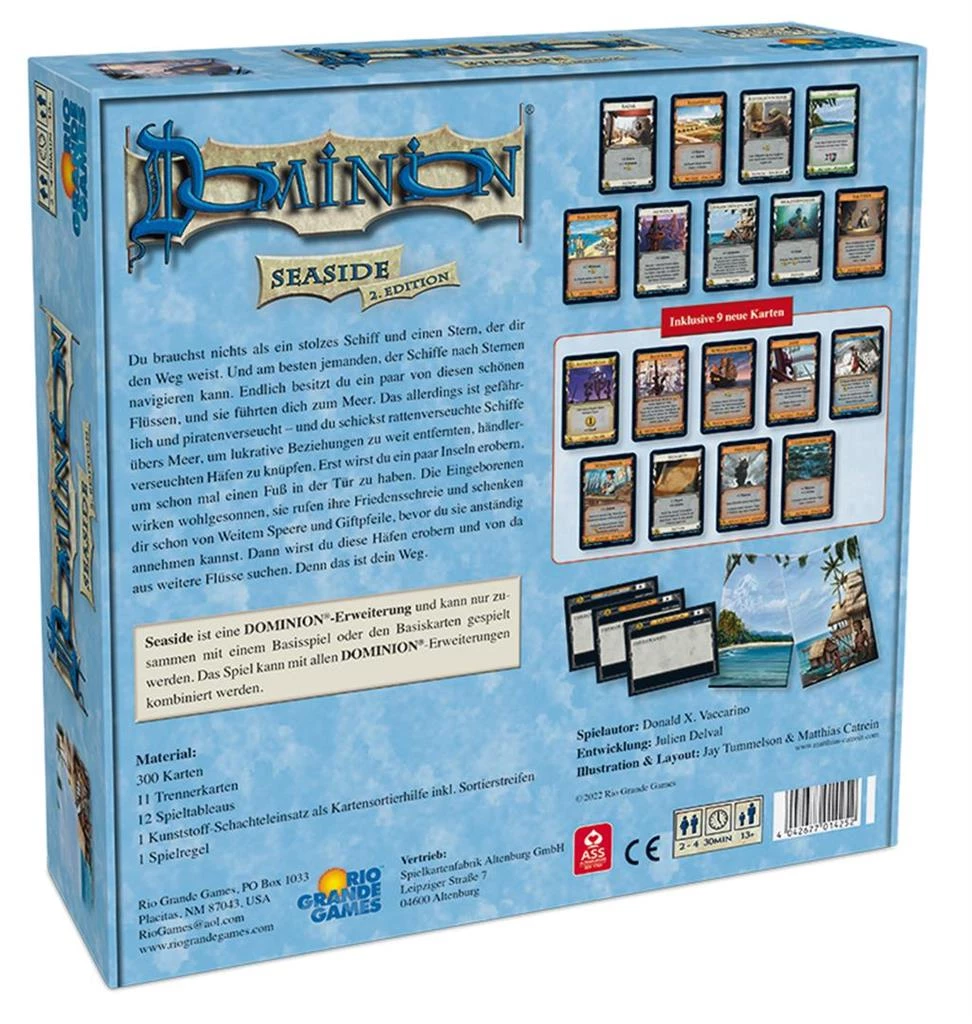 Prepare your coming turn by setting sail. Dominion: Seaside is an expansion to both Dominion and Dominion: Intrigue. As such, it does not contain material for a complete game.