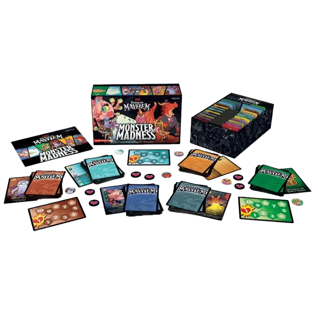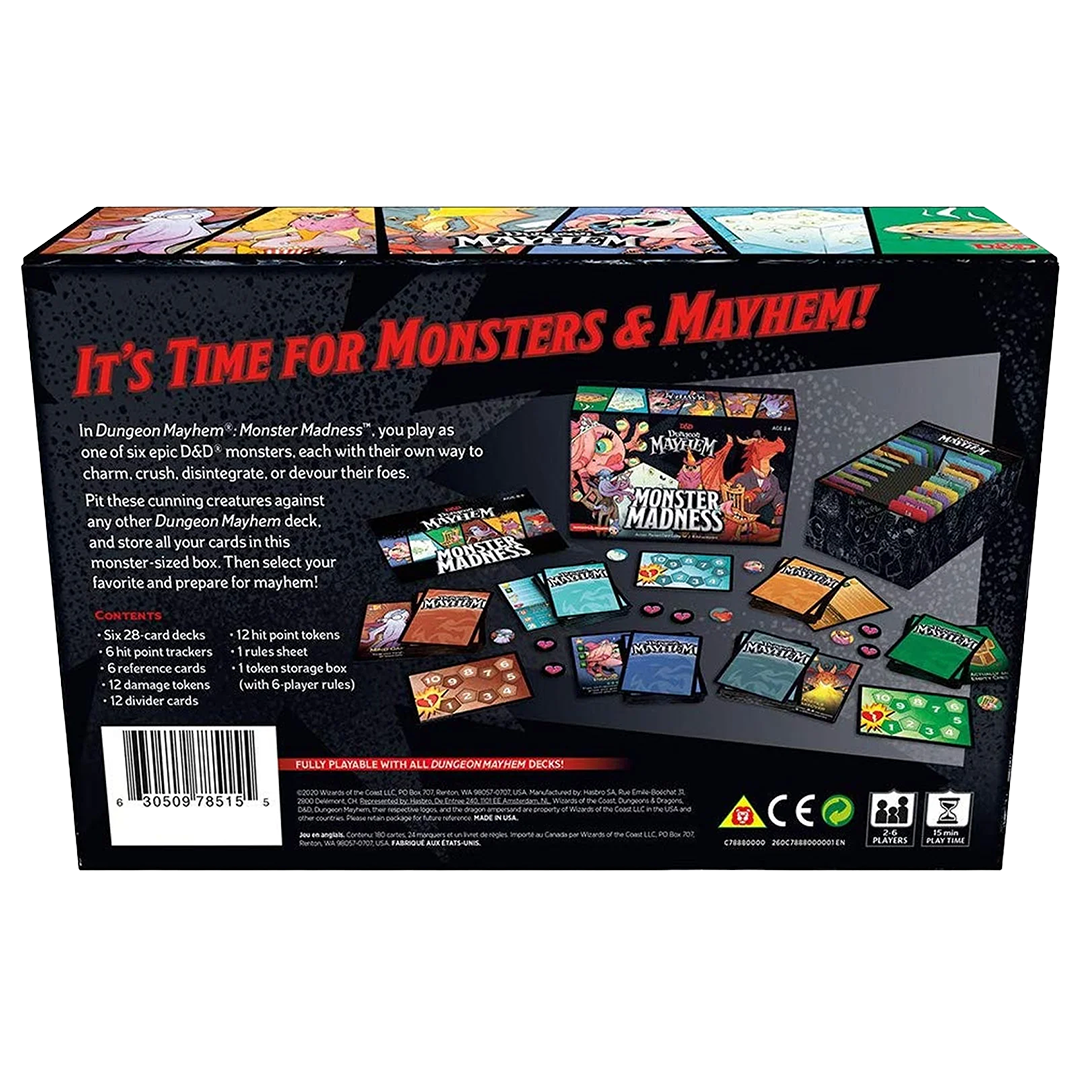We're getting ready to throw down once again, this time with the third iteration of Dungeon Mayhem, the easy-to-learn, family-friendly, D&D card game that pits the wits and brawn of a party of adventurers against each other. In Dungeon Mayhem: Monster Madness, you play as one of six epic monsters, each with their own way to charm, crush, disintegrate, and devour their foes. Pit these cunning creatures against any other Dungeon Mayhem deck, and store all your cards in this monster-sized box. Then select your favourite and prepare for mayhem. Plus, you can also enjoy bringing more adventurers into the fold with the addition of rules to include up to 6 players!