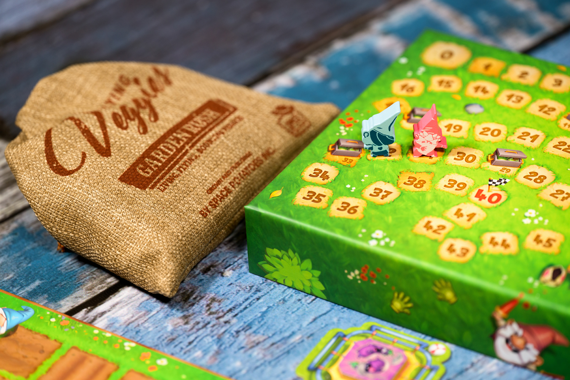 Players place one tile per turn to build their garden, following the harvesting patterns for each vegetable. Extra abilities, including Take That options, can be gained by using special tiles on the board or on the scoring track. The first player to reach 40 points or who has the highest score when the tiles run out, wins.