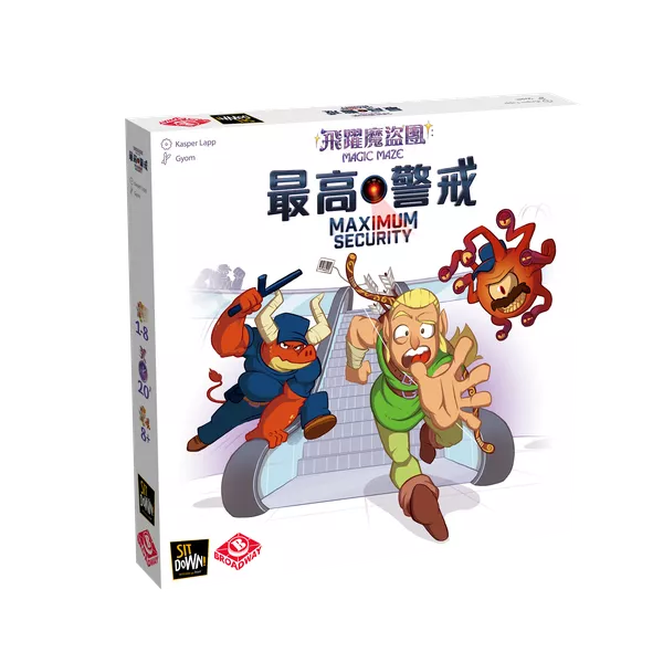The Maximum Security expansion not only brings the mall guards of Magic Maze to life, but provides a number of other modules to allow you to customize your experience. There are two different types of modules: helpers and challenges, which decrease or increase the difficulty. You will be guided step by step through all of the modules, and each of them comes with a tutorial that will help you practise the new rules before adding it to your "real" games of Magic Maze.