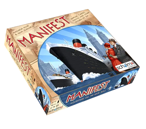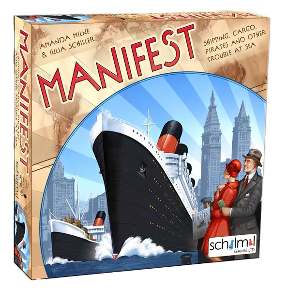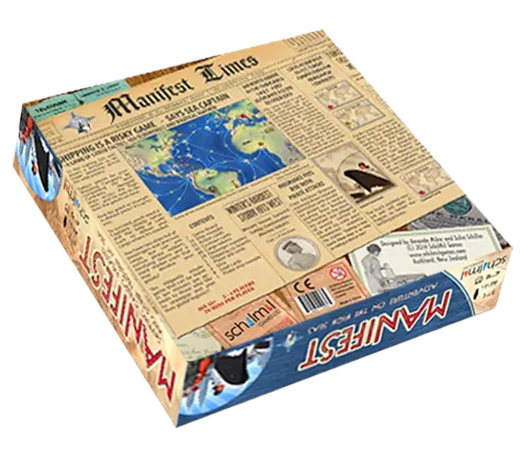 Manifest is a game of cargo ships, sea scoundrels, and nautical mayhem. Win points for your shipping company by completing Contracts. Pick up the required goods or passengers at their source, then navigate the high seas to deliver them to their destination. With a choice of private and public contracts and multi-purpose action cards, there are many paths to victory, and some "take that" options to make sure your opponents don't steal the limelight.