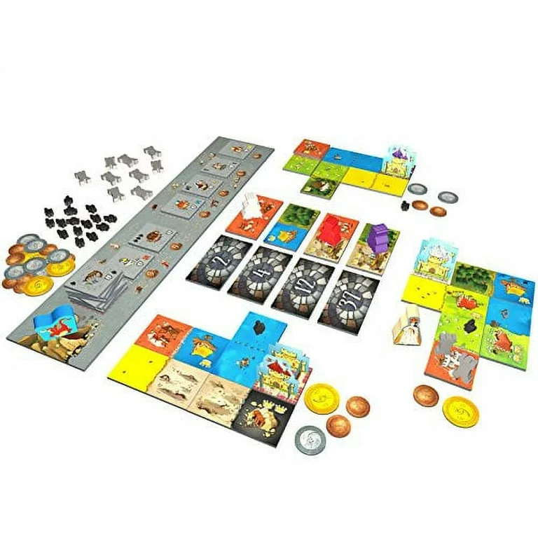 Build up the most prestigious kingdom by claiming wheat fields, forests, lakes, grazing grounds, marshes, and mountains. Your knights will bring you riches in the form of coins — and if you make sure to expand the towns on your lands, you will make new buildings appear, giving you opportunities for new strategies. You may win the Queen's favors ... but always be aware of the dragon!