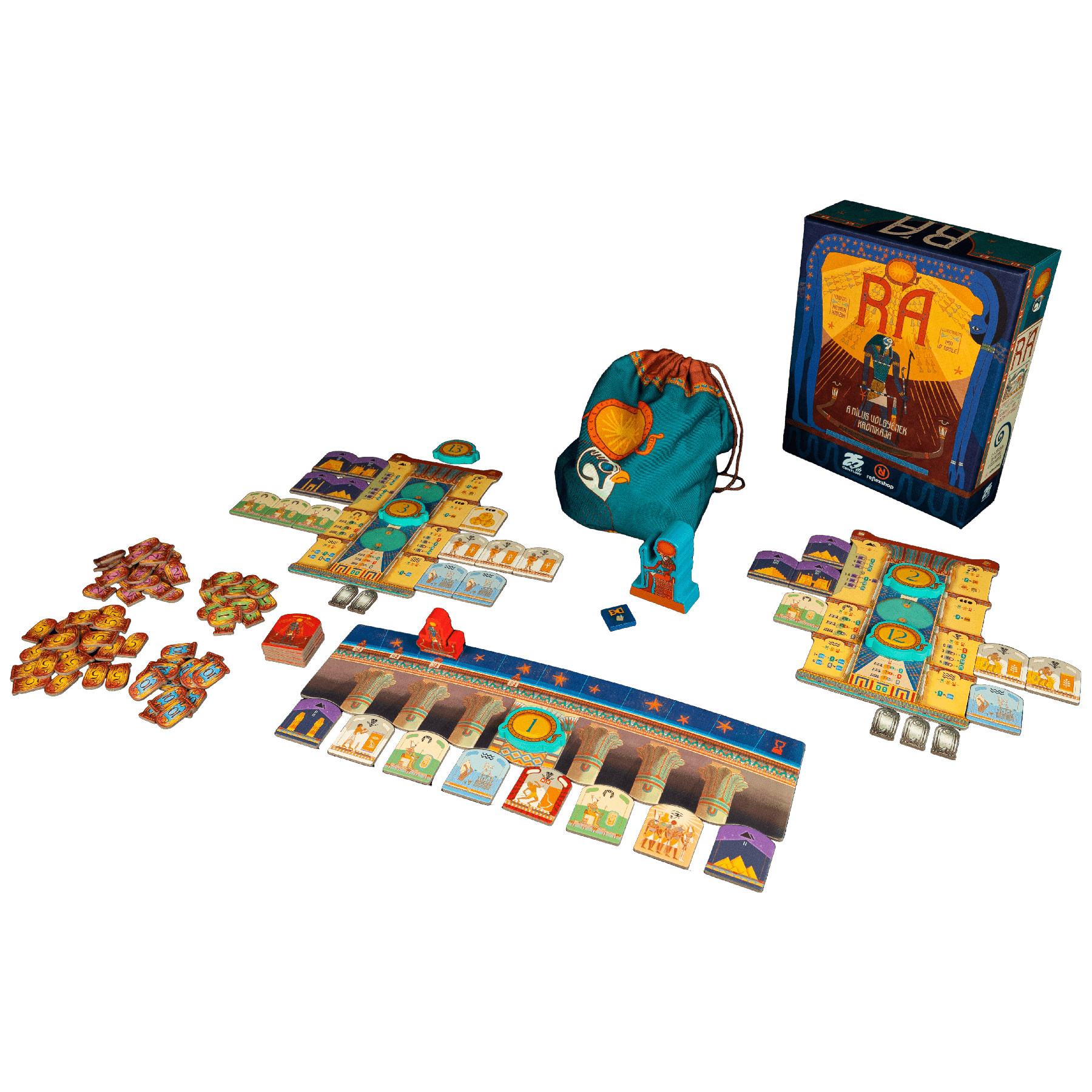 The players seek to expand their power and fame and there are many ways to accomplish this: Influencing Pharaohs, Building monuments, Farming on the Nile, Paying homage to the Gods, Advancing the technology and culture of the people. Ra is an auction and set collecting game where players may choose to take risks for great rewards or... And all this is for the glory of the Sun God Ra!
