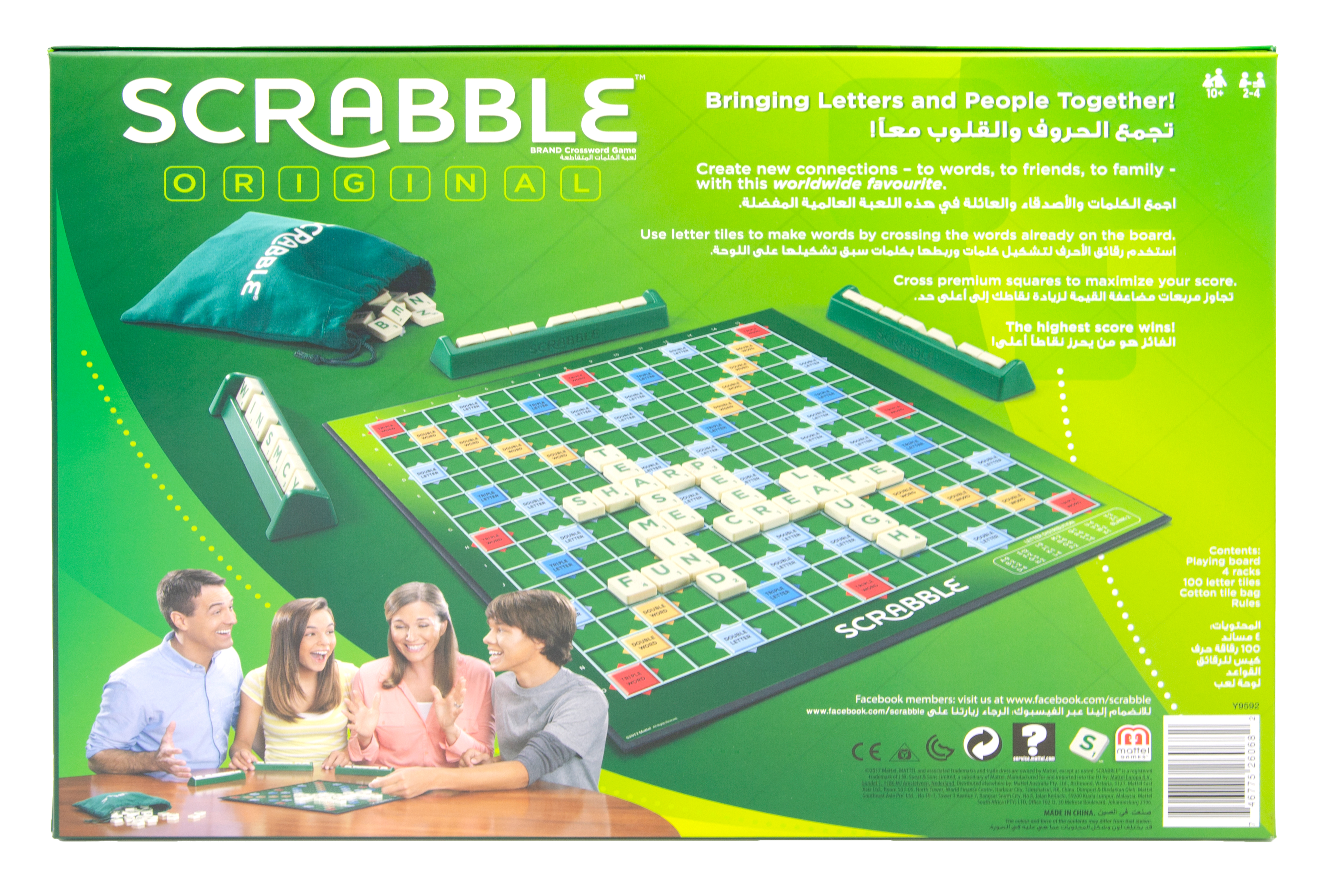 Scrabble is the classic board game that always spells F-U-N. Consisting of interlocking words, crossword fashion, onto a playing board, Scrabble game challenges players to spell out words using letter tiles with various score values. The object of the game is to get the highest score, and scores are given for letter values and boosted by premium squares on the grid. Words can read either across or down, and your word must use a letter tile already in play on the board. Each player competes by using their tiles in combinations and locations that take the best advantage of letter values and premium squares on the board. More than just a game, Scrabble actually improves your vocabulary as you're introduced to new words each time you play.