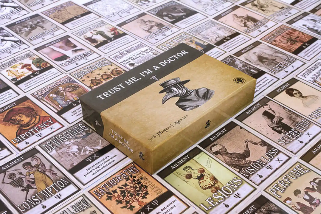 Trust Me I’m a Doctor is a hilarious card game that lets you become an old time doctor, treating serious medieval maladies with some VERY questionable cures.