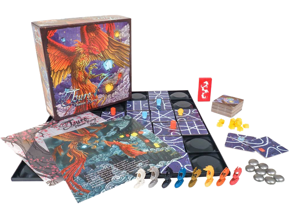 Featuring gorgeous phoenix miniatures, beautiful lantern tokens, and unique gameplay elements such as life tokens that allow your phoenix to be reborn from the ashes once per game, Tsuro: Phoenix Rising is a new chapter in the legacy of Tsuro!